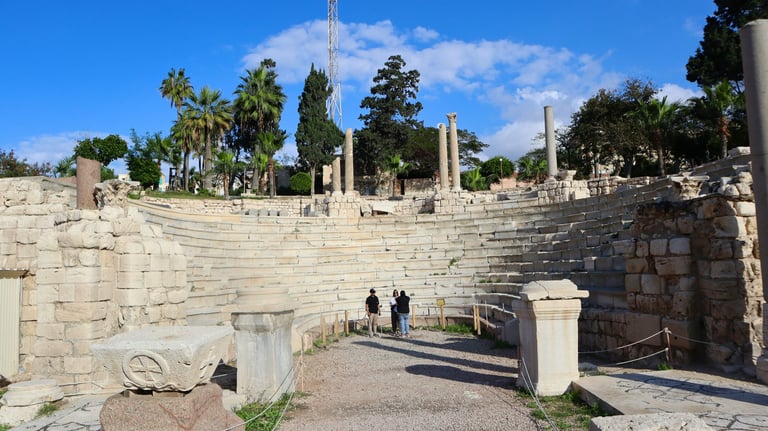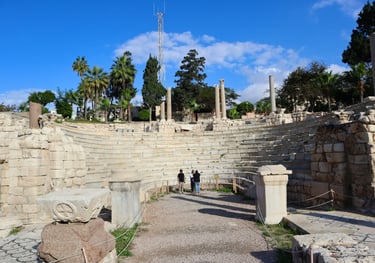 What to Expect: Marble seating in a semi-circle, mosaic floors, columns, and open-air walking paths.