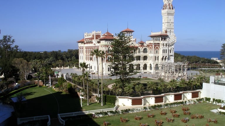 Overview: Lush gardens around the Montaza Palace, a former royal residence.