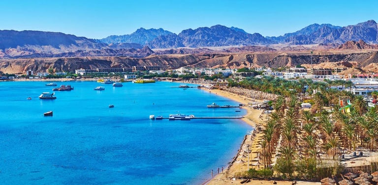 Sharm El Sheikh is a popular resort town located on the southern tip of the Sinai Peninsula in Egypt, along the Red Sea.