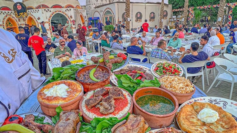 Sample traditional Egyptian street food (like koshari, falafel, and shawarma)
