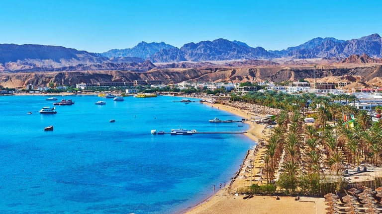 Sharm El Sheikh is a popular resort town located on the southern tip of the Sinai Peninsula in Egypt, along the Red Sea.