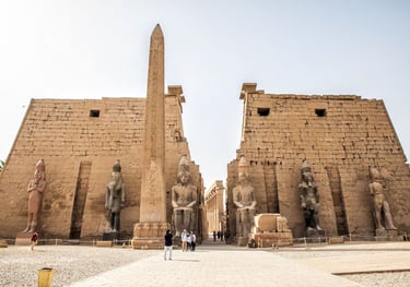 A magnificent mortuary temple built into the cliffs at Deir el-Bahari. Tours often highlight Hatshepsut’s unique role as one of Egypt’s few female pharaohs.Colossi of Memnon: