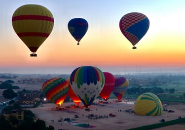 A sunrise balloon flight over the West Bank offers panoramic views of temples, the Nile, and distant desert landscapes. This is often the first activity of the day and is timed perfectly for the golden morning light.
